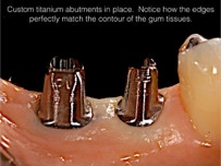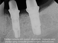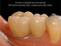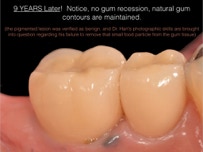 When we make crowns, the back teeth are just as important as the front teeth when it comes to aesthetics. What is especially important is making sure the gum tissues surrounding your crowns are totally healthy on a long term basis. This is accomplished by controlling the contours (emergence profile) as your final restoration is created. The following slide sequence demonstrates computer guided implant placement, custom abutments, metal free crowns, and a long term successful outcome.